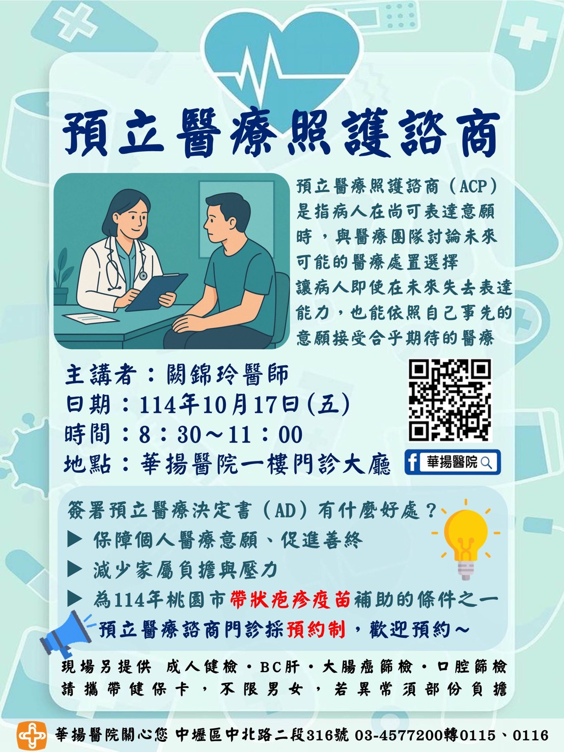 10/17華揚醫院健康講座主題: 預立醫療照護諮商